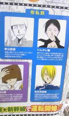ライオンズのここ最近の動向には、昨日もヤキモキしながらテレビやラジオの中継に食いついていましたが辛くも勝利でほっと一安心。 さて、日曜日はジョニさんと帝都デートをしてきました。(笑) 所沢車両工場で開催されている美術展「引込線」を見に行ってきまして。 去年の夏の「プレ美術展」の時は作品そっちのけで工場の様子ばかりに目が行ってしまったのですが、今年は作品数もずっと多くなっていたので、作品も鑑賞しつつ……やっぱり芸術は難しいので、規模拡大で新たに公開された(去年は入れなかった)工場の別部分に見入ってました。 ジョニさんもこの会場はお気に召したようで、「車両工場って楽しい!」というテツな思いを理解していただけてとても嬉しかったです。 会長も草葉の陰からきっとお喜びであるぞ……!!(感涙) そしてその後はお茶しつつ、最近ジョニさんが「サマーウォーズ」にハマっていらっしゃるという話を伺っていたので「私も気になっていつつまだ観てないんですよ~」という話をしたら、その場で急遽「これから行こうか!」という展開になり、近場の映画館へ(その会話から約30分後の回を)観に行ってきました。(←弾丸ツアー!笑) もうね……覚悟していた以上に泣きましたよ……! これは良い映画! 元々涙もろい上に「家族が力を合わせて困難に立ち向かう」というクレヨンしんちゃん的作品には特に弱いタチなので、観賞前から「俺、この設定だけで泣けるわ……」という予感はあったのですが想像以上でした。 健二のアカウントが乗っ取られて、邪悪に改変されたアバターが仮アバターを容赦なくぶん殴ったあたりから「恐ろしい子……!」な第一波の涙が来て(←あれは生理的な嫌悪感で泣きましたが)、その後はもう感動の涙がだだ漏れで。 これ家で一人で見てたら確実に声上げて泣きますよ……そのくらいのレベル。 私も親戚は多い方なので(特に母方の親戚は、20年後にはリアル陣内家(人数的にはあれ以上)が出来上がりそうな感じ・笑)、そういった意味でも親近感を持って見ることができました。 キャラクターは、個人的には「彦三兄弟」と翔太兄ちゃんが好きです。 あからさまに制服(&ガテン系)スキー丸出しですみません。 実は密かに水道局員の和雄お父さんにも見とれてました。どんだけ公務員制服に弱いんだ私は……!(笑) ちびっこキャラでは真悟が好きです。越生みたいで。(←やんちゃ坊主好き) 二次創作するまでのストーリー設定はまだ思いつきませんが、そのうちイラストでも描き始めたら「ああ……転びやがったな……」と生暖かい目で見てやって下さい。(薄笑) そして映画後は再び帝都駅へ戻り、サマーウォーズ関連の書籍を探していると…… 平積みされた「青春鉄道」に、大々的なPOP(初めて見た!)が施されていました。 しかも…… アッ──!! ち、秩鉄もおる……! カラー未登場なのにわざわざピックアップ! そして「マニア人気高し」って!笑 しかも池袋と同枠扱いなんだぜ……!(私の目にはりんかいは見えてません) 帝都に「秩鉄×池袋公式フラグ」が立ちましたよ……!\(^o^)/ (↑私の目には副都心は見え以下略) もうこの広告、中吊りにしてあらゆる電車内にぶら下げてしまえよ! と思いました。そのぐらい大きくて秀逸な作りでした。 私の布教活動も、まだまだ止まりませんよ……! ↓以下、拍手お返事です。(こんなに下に来てしまいすみません・汗) >9/12 21:45 「西池と秩鉄のお話で、~」の方